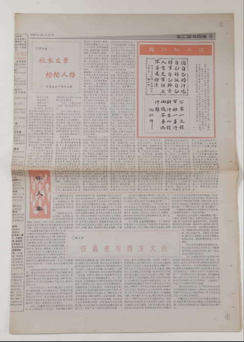 1985年伍蠡甫教授、翁义钦教授合著 | 1983年《西方文论选》(上、下卷)获评 | 1999年《文汇读书周报》上 |