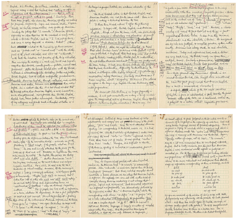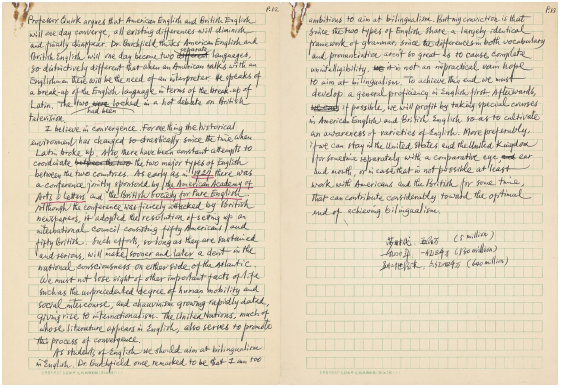 表面上,这两页手稿讨论观看莎剧《终成眷属》一出中文改编舞台剧的观后感,然而陆先生举重若轻,探讨了该剧的实质并非浪漫喜剧,更接近“问题喜剧”,问题的核心则是一个人“该做什么”与“愿做什么”之间的冲突,陆先生进而深入分析了莎翁对“愿做什么”背后动机的处理,观点新颖,文末还给出了舞台表演方面(比如演员是否该穿中国古装)的建议。