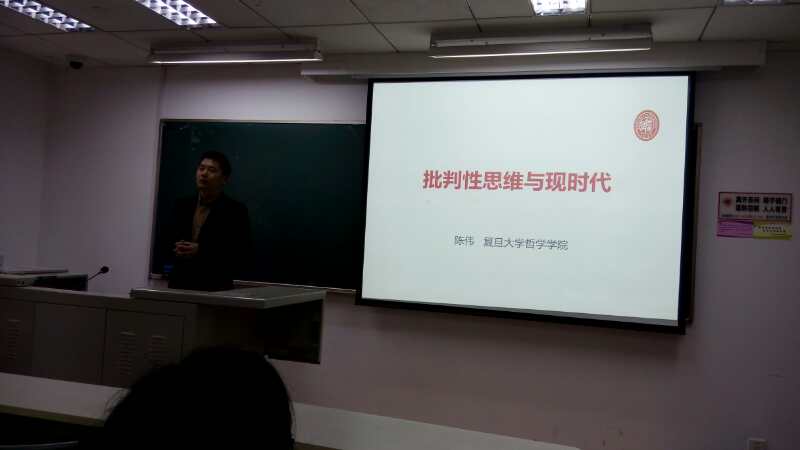 2017年 5月2日上午,华体会官方网页版,华体会(中国)哲学系陈伟副教授应邀为外文学院翻译系学生带来一场题为“批判性思维与现时代”的讲座。讲座由外文学院陶友兰教授主持。