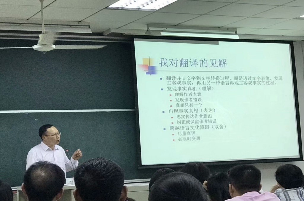 2017年10月10日晚,北京外国语大学高级翻译学院副院长李长栓教授受外文学院邀请来到华体会官方网页版,华体会(中国),为学校师生以及一些翻译界人士带来了题为“翻译是发现和再现真相的过程”的讲座,陶友兰教授主持讲座并致欢迎辞。