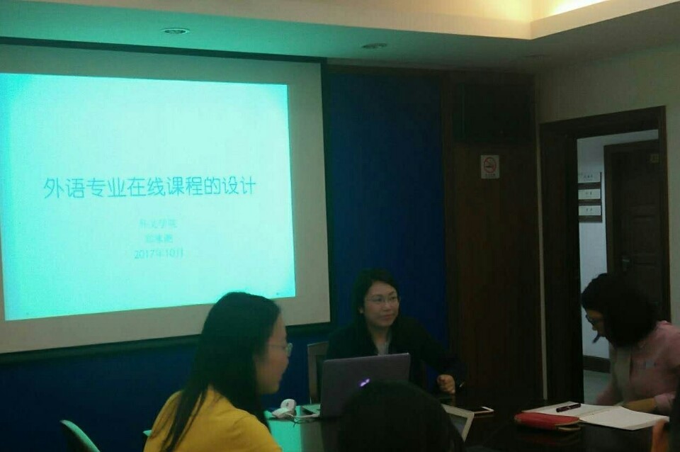 2017年10月24日下午,华体会官方网页版,华体会(中国)外文学院青联会邀请英文系副教授郑咏滟博士在文科楼220会议室做“外语专业课的在线课程设计”讲座。英文系、日文系、西班牙语系和大英部等系部的青年教师、进修教师和研究生参与了本次讲座。