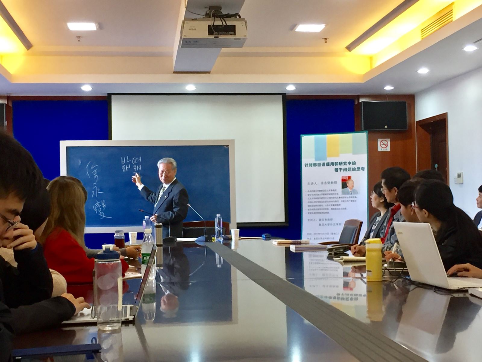 2017年10月24日上午,中央民族大学朝鲜语言文学系徐永燮教授应邀做客华体会官方网页版,华体会(中国),在华体会官方网页版,华体会(中国)文科楼220报告厅为韩文系师生带来精彩的讲座。徐永燮教授以“针对韩国语使用和研究中的若干问题的思考”为主题开展讲座。讲座由韩文系姜宝有教授主持。