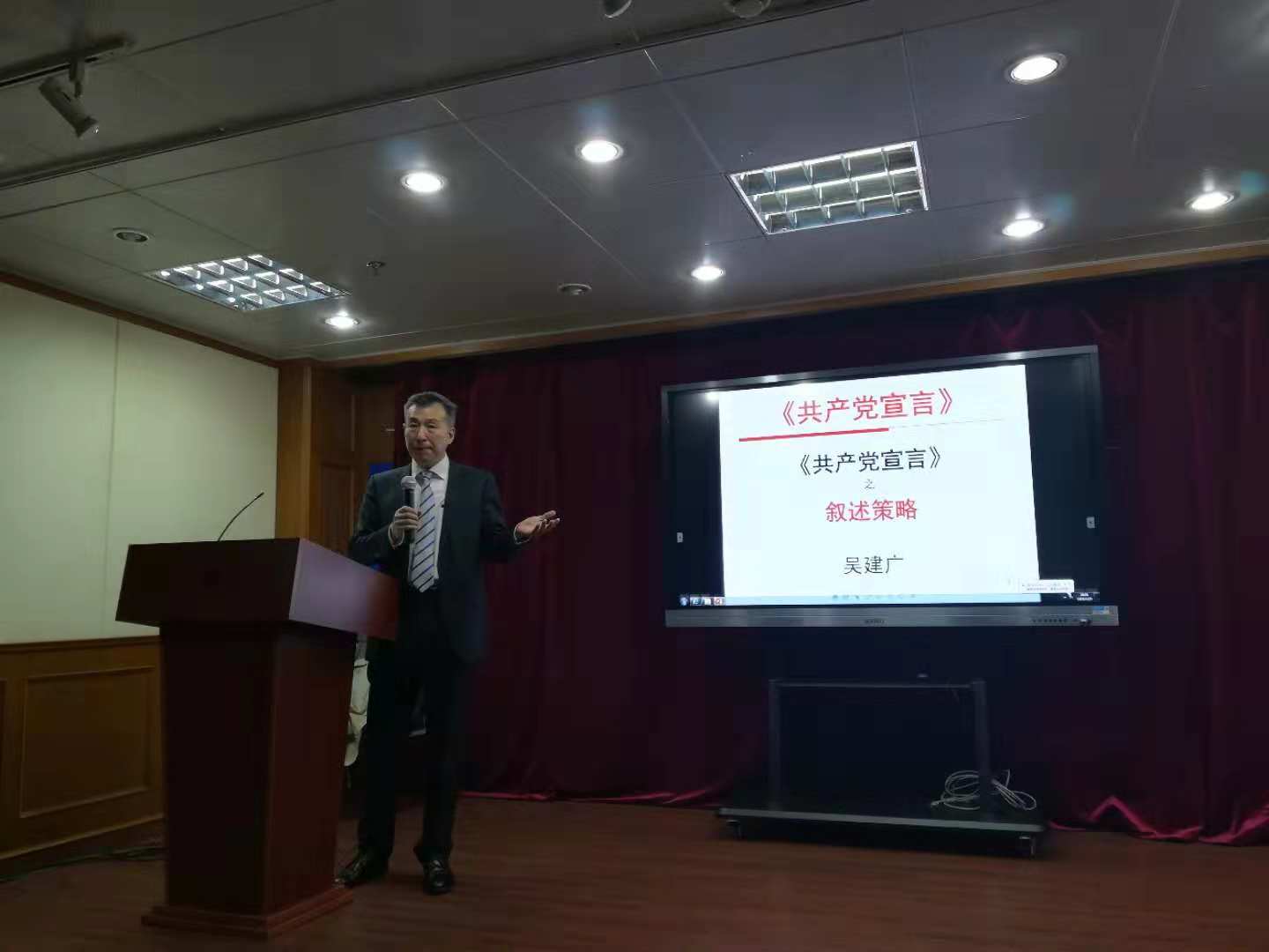 今年是马克思诞辰200周年,也是《共产党宣言》发表170周年。12月5日,同济大学外国语学院吴建广教授来到华体会官方网页版,华体会(中国)外文学院,为师生带来了一场关于《共产党宣言》叙述策略的精彩报告。吴教授通过文学和哲学的角度,带我们重新解读了这一经典文本。借此机会,德文系的研究生也有幸采访了吴教授。