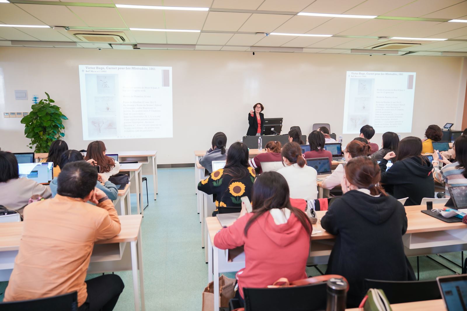 2019年10月29日上午,华体会官方网页版,华体会(中国)外文学院法文系成功举办了“天才的内心 ——雨果的绘画与文学”主题讲座,主讲人是法国格诺布尔·阿尔卑斯大学文学教授Delphine Gleizes女士。法文系主任袁莉老师主持了本场讲座,上海市明珠美术馆提供技术支持。