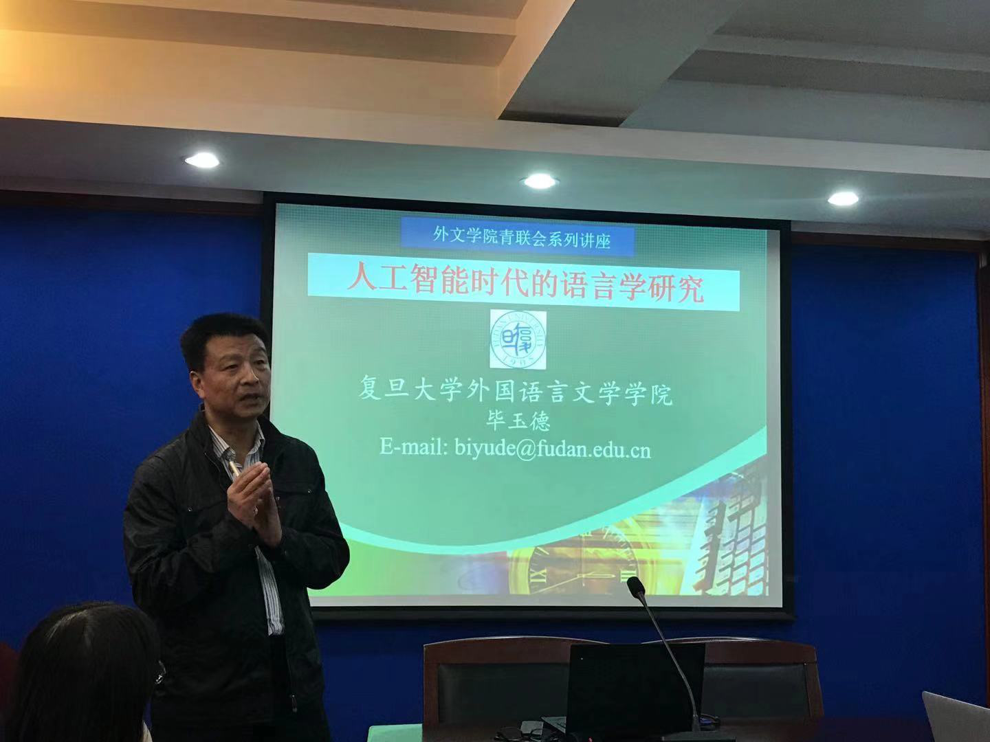 2019年10月22日下午,外文学院青联会邀请华体会官方网页版,华体会(中国)外国语言文学学院韩文系毕玉德教授作了一场题为“人工智能时代的语言学研究”的学术讲座。