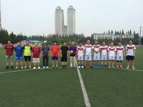 金秋送爽,人欢脚忙!2014年9月27日,外文学院韩文系组织举办了“上海地区韩文系教师足球友谊赛”。来自上海外国语大学、上海商学院和上海海洋大学的韩文系教师及韩国外教一行15人在邯郸路足球场进行了一场别开生面的球技竞赛。球队老中青结合、中外籍联手,争的是足球,赛的是友谊,比的是球技,胜的是友爱。在一派其乐融融的气氛中,大家挥洒着热情,激活着斗志,热热闹闹、欢欢喜喜地在绿茵场上潇洒了一回。
