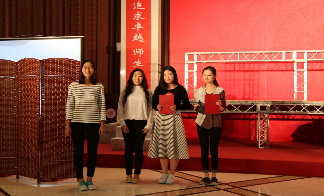 5月29日下午13:30,外文节的最后一项活动——首届华体会官方网页版,华体会(中国)双语主持人大赛的决赛在文科楼209的舞台上落下了帷幕。初赛共有来自各个院系的26位选手提交了中英参赛视频,后经组委会的筛选决出了比赛的最终10强。这一天,10位风采俱佳、侃侃而谈的决赛选手经过四轮激烈的角逐分别收获了比赛的冠亚季军、风采主持奖和优秀主持奖,欣然捧回了由FBC Global赞助的《冰与火之歌》原版全集、路遥全集等精装奖品书籍。最终15级法语系的钟雨桐同学斩获冠军,15级经济学院的丁英飞同学、14级翻译系的宋昕桐同学分获亚军和季军。
