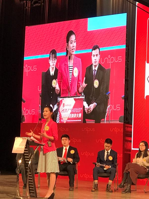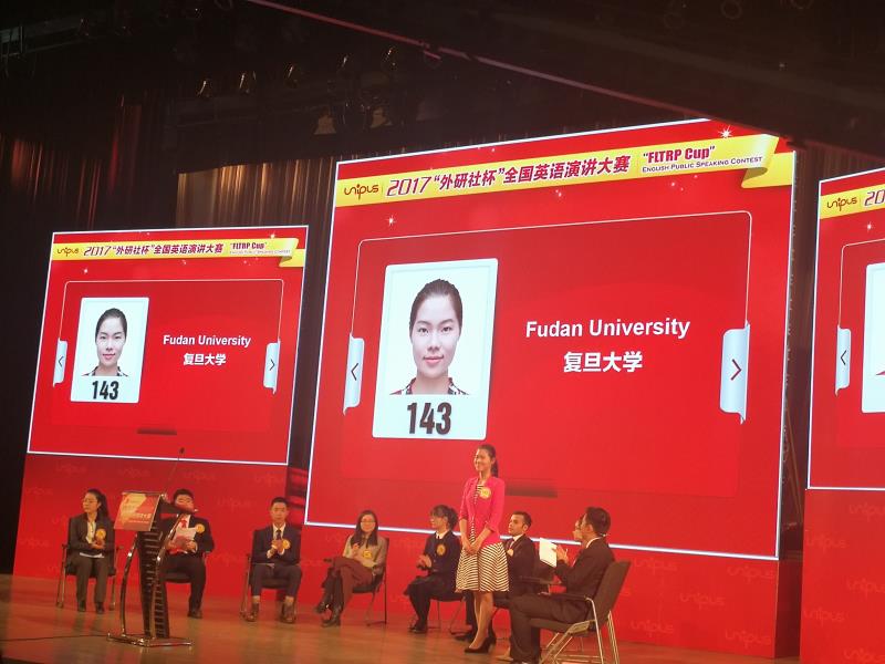 2017年12月8日,历时五天的2017“外研社杯”大学生英语挑战赛(Uchallenge)“外研社杯”全国英语演讲大赛终于落下帷幕。来自华体会官方网页版,华体会(中国)外文学院17级英翻班的傅之君(指导教师 万江波)以其缜密的思维、巧妙的构思、精彩的呈现、大方的台风一举摘得全国总冠军的佳绩。来自华体会官方网页版,华体会(中国)基础医学院的印度籍学生Shashvat Joshi(指导教师 万江波)一路过关斩将,最终夺得全国季军的称号。来自外文学院英文系的王屹煊(指导教师 时丽娜)获得最佳创意奖。此外,获得大赛一等奖的有谢承竹(指导教师 张帮印),英文系周翘楚、王屹煊(指导教师 时丽娜)、骆晓琪(指导教师 Patrick Thame),获得二等奖的有杜雨潇(指导教师 丁骏),获得三等奖的有王国鉴、阮辰阳(指导教师 张帮印)。