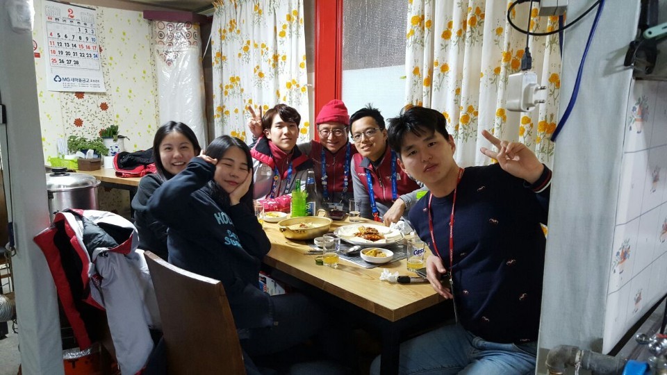 在两个多月的志愿服务过程中,我第一次在在异国他乡度过春节,也真切感受到了“每逢佳节倍思亲”。韩国人虽然也过春节,但是他们的习俗和我们不太一样。不过,当组内的小伙伴们知道我们的春节习俗后,还特地为我组织了一顿年夜饭。虽然吃的比较简单,但是大家就像是一家人一样,让我觉得特别感动。