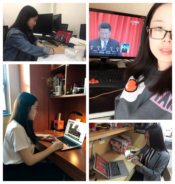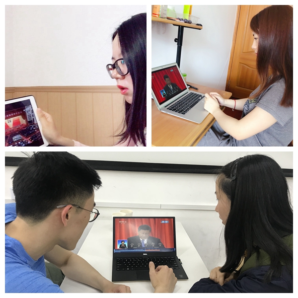 部分学生党员,以及在海外高校交流学习的学生党员也通过各种形式观看大会直播,学习习近平总书记重要讲话。