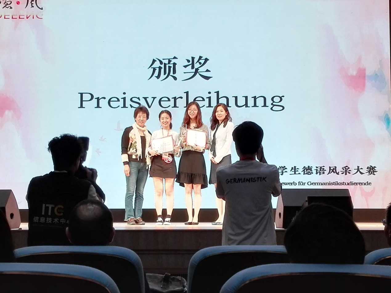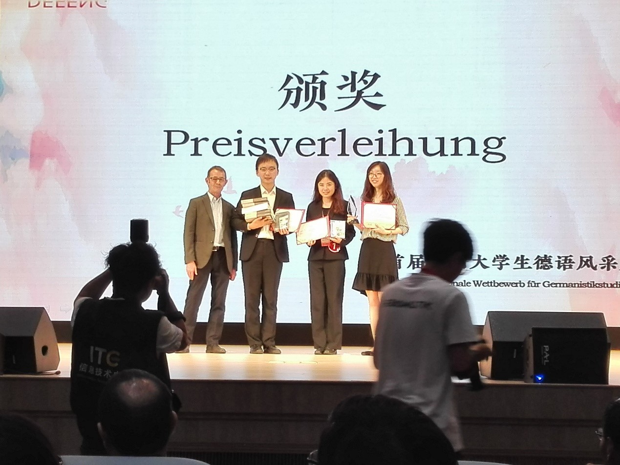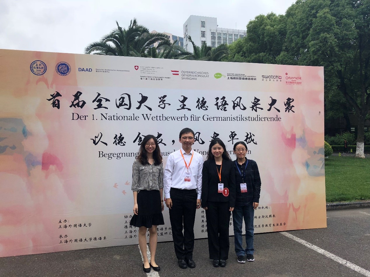 2018年5月20日,首届全国大学生德语风采大赛在上海外国语大学举办。德文系徐璟瑶、邵钰清、张政三位同学代表华体会官方网页版,华体会(中国)参加比赛,德文系秦文汶老师带队指导。比赛设有命题演讲、即兴演讲、知识竞赛等环节,华体会官方网页版,华体会(中国)代表队与来自全国七所高校的二十多位选手同台竞技,展开激烈角逐。三位同学展现了深厚的专业素养和出色的综合能力,在比赛各环节均获得高分,受到在场师生一致好评。最终华体会官方网页版,华体会(中国)代表队夺得大赛团体一等奖,徐璟瑶同学还荣获命题演讲最佳选手。