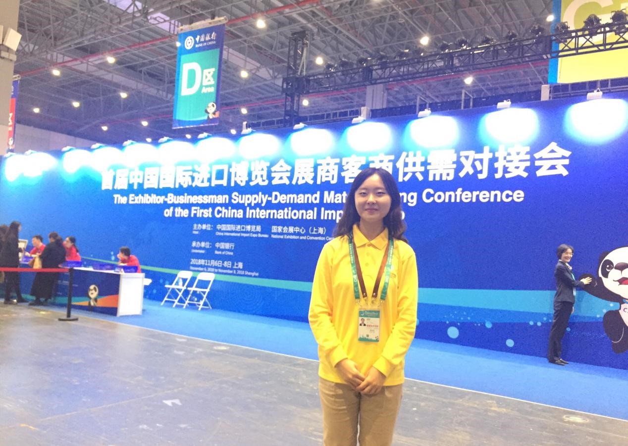非常荣幸参加了首届进博会展商客商供需对接会,负责在6.2展馆为参与进博会的法国展商、突尼斯展商和中国客商提供中法翻译,促成双方达成合作意向。每一天,负责展会现场的工作人员们都在积极努力为展商客商服务,不停地通过现场调度,及时了解双方情况,尽力寻找到对应的合适的合作者。在这三天中,展会现场不时会响起广播,宣告又一对展商客商达成了一致,签署了合作意向书。进博会成功促进了跨国的商业贸易合作,进一步推动了经济全球化,也展现了中国改革开放40年来所取得的伟大发展成就。能够为这样的盛会贡献出一份力量,我感到非常地骄傲和自豪。