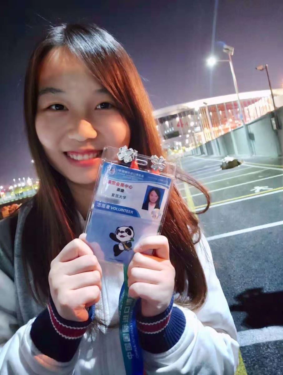 成为首届中国国际进口博览会的一名志愿者,是一次难忘的经历。经过前期大量的培训和实战演练,我们不仅对进博会的志愿服务工作有了更深的了解,也对身为志愿者所承担的责任有了更深的认识。志愿者工作是庄严神圣的,虽然只是作为五千名志愿者的一员,但我们代表的是复旦的形象和中国的形象,拥有光荣的使命和重要的责任。我被分配到的是停车场引导岗,看似平凡的岗位实则有其重要的价值,让退场嘉宾经过引导顺利乘坐车辆离开国家会展中心就是我们的职责所在。嘉宾们看到我们时面带肯定的笑容和真诚的感谢是我永远不会忘记的。夜幕降临,路灯一盏盏亮起,一起亮起的还有我们胸前闪耀的志愿者徽章。非常荣幸参与到了此次进博会的志愿者服务工作中,近距离参与到进博会中,和其他复旦同学一起为这场举世瞩目的盛会贡献了自己的一份力量,这次经历太难得也太难忘。