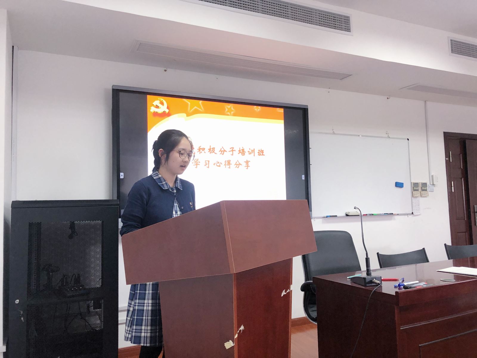 入党积极分子培训班学员以学习小组为单位,分享了培训学习与实践体悟。入党积极分子们表示在为期一个多月的学习和实践中收获颇丰,通过多次专题报告和讲座,学员们对党史、国情有了更清晰的把握,理论知识水平有了一定的提高。在实践参访和小组活动中,学员们一同回顾共和国70年的历史进程,追忆老一辈无产阶级革命家的光荣事迹,全方位多角度地了解了中国共产党发展的光辉历程,进一步端正了自己的入党动机、明确了努力的方向。在最后,大家表示在今后的学习和生活中要时刻以党员的标准严格要求自己,承担起青年的时代责任,学好外国语,做好中国人,讲好中国故事,争取早日入党。