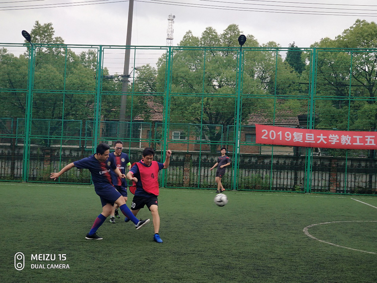 友好竞输赢,团结赛豪情,绿荫争荣誉,忘我耀门庭。外院队员们精神抖擞,全力以赴,为了为集体争光抛弃了一切私心杂念,忘却了所有个人得失,赛出了外院人的高尚风貌,显示了外院职工的坚毅品行。姜宝有老师虽然年已六旬,但宝刀不老,雄心不泯,毅然参战,并担当了队长的重任。外院赛坛宿将郭一诚、邹波、赵世锋老师虽已青春不再,但为了学院的荣誉,一经召唤便责无旁贷地应征入了伍。新生力量陈豪、王珑兴老师由于平时疏于训练,技术生疏,但凭借一腔为外院献身的热情,义无反顾地挑起了重担。激烈的角逐,带来了身体的伤痛,没有一个人叫苦,没有一个人退却。王亚鹏老师鼻子由于与对手冲撞流血,他甩一甩头,若无其事地继续厮杀。邹波老师四场比赛几乎都踢满全场,下场后左脚脚底已磨掉一块皮,可他从来没有吭过一声。