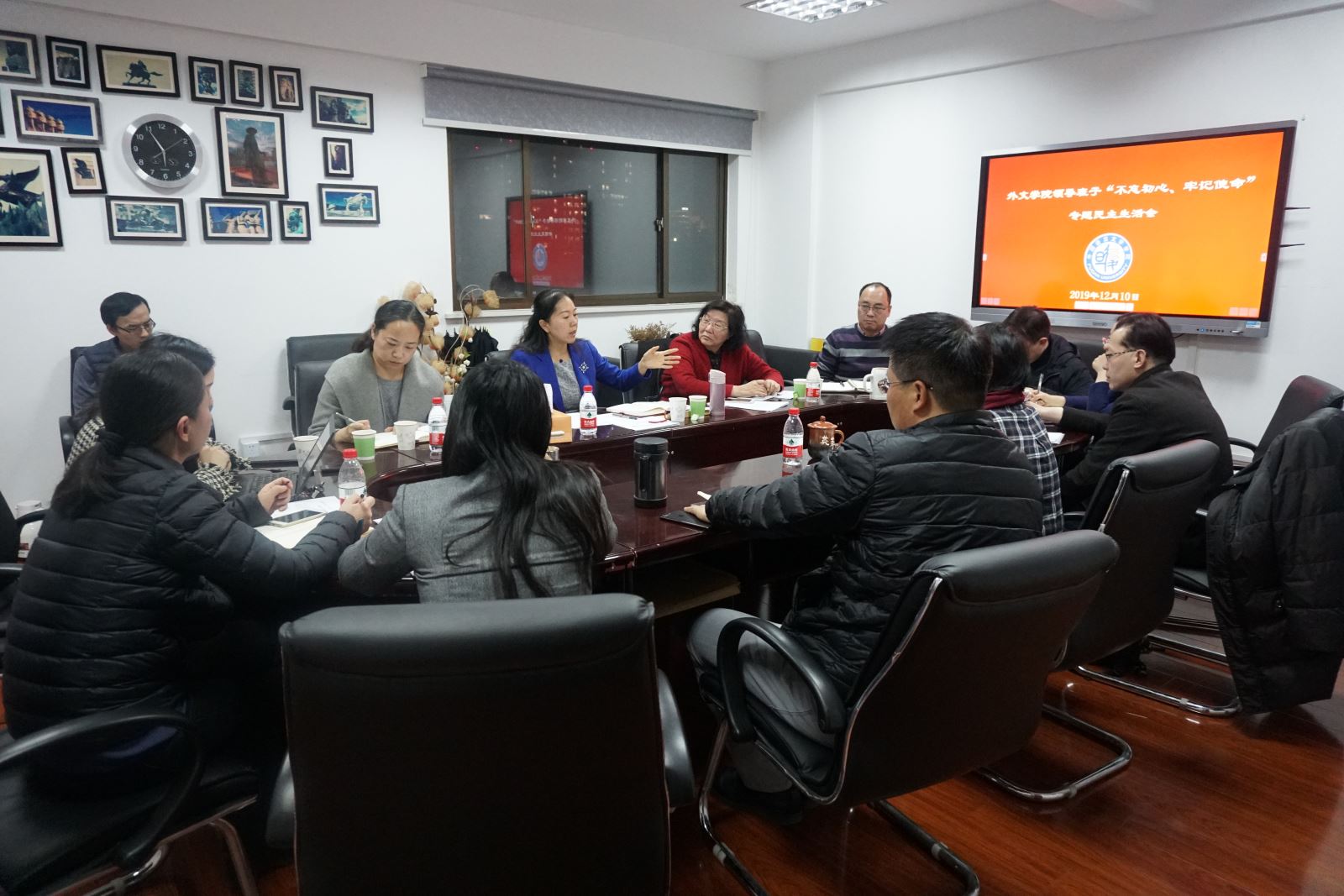 12月10日下午,华体会官方网页版,华体会(中国)外文学院党政领导班子召开“不忘初心、牢记使命”专题民主生活会,外文学院党委书记罗英华主持会议。校党委副书记尹冬梅到会指导,校第五巡回指导组组长张宏莲和纪委办申华蕾同志出席会议。