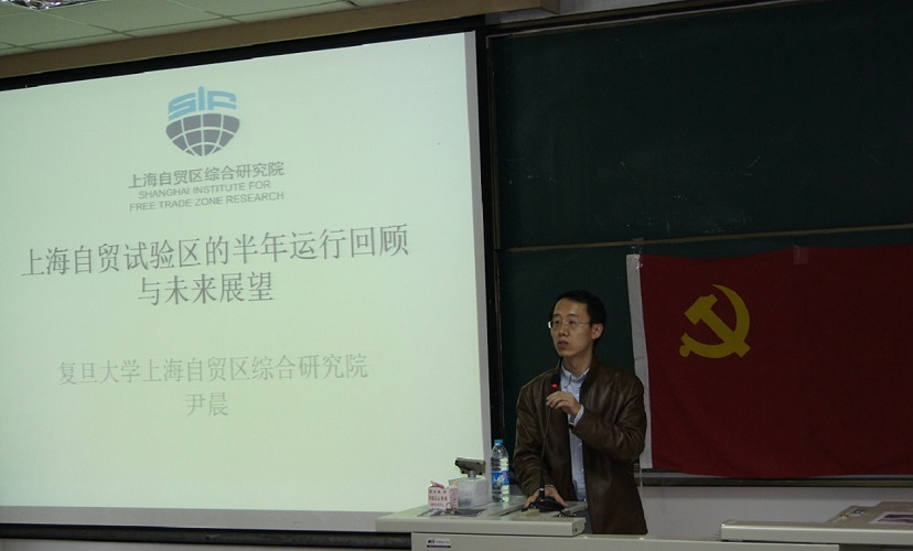 2014年4月8日下午,外文学院邀请经济学院教师尹晨进行题目为“上海自贸试验区运行半年回顾及未来展望”的党员辅导讲座。参加讲座的有学院的党员教师、部分非党员教师及学生支部代表。