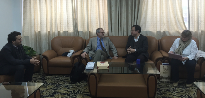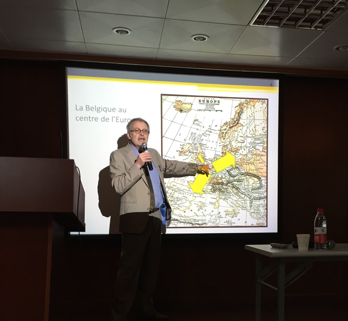 自去年底曲卫国院长与比利时瓦隆-布鲁塞尔大区(WBI)驻华代表团团长Philippe Nayer会面以来,双方进一步加强了在学术和文化领域的合作。2015年3月24日下午,比利时布鲁塞尔自由大学(ULB)副校长Jean Michel De Waele一行访问复旦,并特地移步外院拜访了曲卫国院长。双方愉快地交流了六年来ULB和复旦法文系师生的学术教学合作情况,并就未来进一步拓展和外院其他语种及翻译系的合作培养事宜交换了意见和建议。2015年4月10日,比利时列日大学外文学院院长Jean-Marc Defays、国际事务部主管Laurence Wery一行到访华体会官方网页版,华体会(中国)外国语学院,曲卫国院长和法文系主任袁莉老师予以了热情接待。Defays教授表示这是他第一次到访上海,希望能够推动两个学院之间各学科在学生交换、教师互访和联合研究方面的实质性合作。列日大学的两位教授还给复旦法文系师生做了一场题为《全球化背景下的语言教学》的精彩讲座。