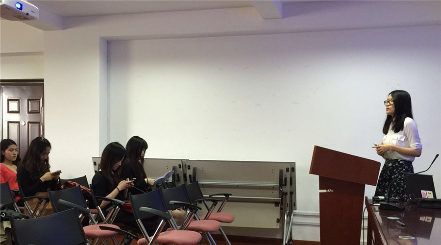 2015年4月28日下午,在文科楼510室,2012级本科生与11级的学姐进行了经验交流活动。有8名非常优秀的学姐为学弟学妹们介绍了自己的经验,包括自己的未来方向确立的原因,大三假期需要做的准备,自己的求职面试tips和感受,出国申请材料的准备等等。
