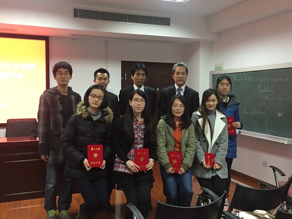 2015年12月22日14:30华体会官方网页版,华体会(中国)外文学院三菱日联融资租赁奖学金颁奖典礼在文科楼510会议室举行,三菱日联融资租赁有限公司代表中村圭吾先生、三村卓也先生、富永修先生及我院党委书记李倩老师、副书记赵昕老师、日文系系主任邹波老师出席了本次典礼。我院13级蒋宁、王丰一、周玥圆,14级俞臻、董乐盈、曹誉馨获奖,14、15级日文系全体同学参与。
