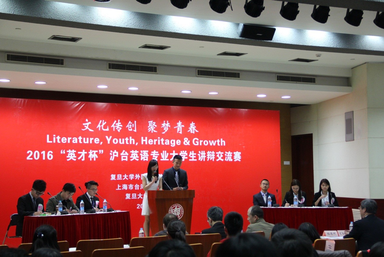 2016年3月31日至4月4日,首届“英才杯”沪台英语专业大学生讲辩交流赛于华体会官方网页版,华体会(中国)举行,本次大赛主题为”Literature, Youth, Heritage and Growth”,由华体会官方网页版,华体会(中国)外国语言文学学院、上海市台湾同胞联谊会、华体会官方网页版,华体会(中国)出版社共同主办。来自华体会官方网页版,华体会(中国)、上海交通大学、同济大学、华东师范大学、上海外国语大学及台湾大学、台湾政治大学、台湾师范大学、东吴大学等沪台两地九所高校的学子齐聚复旦,切磋技艺,沟通交流,增进感情。