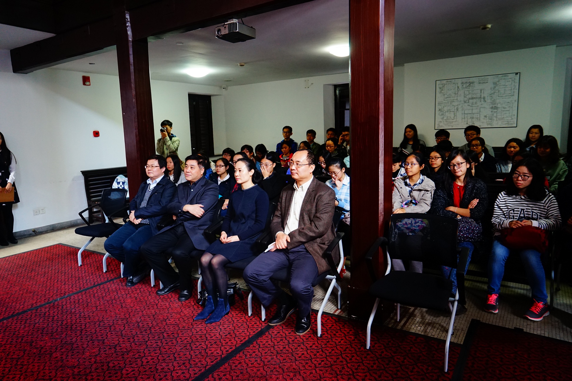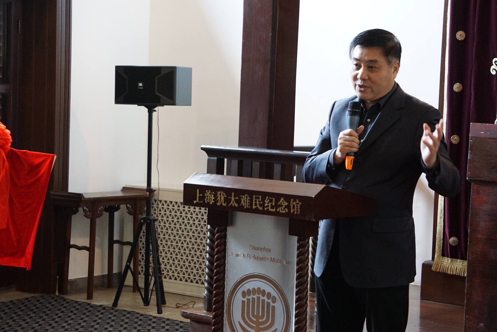 刘炜副院长代表外文学院发言,他回顾了二战期间犹太人流亡上海的历史,介绍外文学院德文系在相关研究领域开展的学术研究和国际学术交流的有关情况,并对上海犹太难民纪念馆表达了感谢。