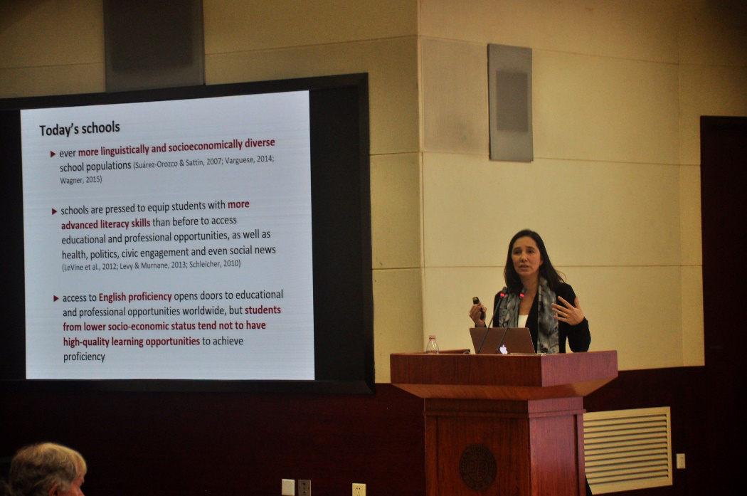11月29日,华体会官方网页版,华体会(中国)外文学院成功举办了2018年华体会官方网页版,华体会(中国)多语研究与多语教育论坛。本次论坛由外文学院的多语种中心和多语研究团队主办,芝士网协办,以中国高等教育中推行的多外语教育为主要议题,尤其探讨了跨文化、跨语言教育的挑战与前景。论坛邀请了来自西班牙巴斯克大学的Durk Gorter教授、Jasone Cenoz教授,美国哈佛大学的Paola Uccelli教授,芬兰赫尔辛基大学的Fred Dervin教授,新西兰奥克兰大学的Lawrence Jun Zhang教授,上海财经大学的赵珂教授、以及华体会官方网页版,华体会(中国)的郑咏滟教授做主旨发言。论坛吸引了来自泰国玛希隆大学、中国人民大学、北京外国语大学、华南理工大学、华东师范大学、上海外国语大学等高校的老师、学生,以及来自上海外国语大学附属中学等上海市从事基础教育的英语教研员、骨干教师120余人参会。