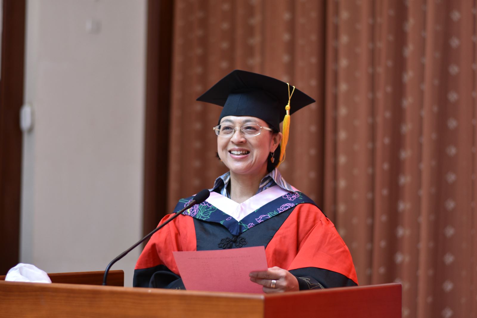 优秀本科毕业生代表、2019届英文系本科生喻子滢,优秀研究生毕业生代表、2019届日文系博士研究生朱田云先后发言,回顾了在复旦的点点滴滴,表达了对青春岁月的不舍、对学院和师长的感恩和对美好未来的憧憬。